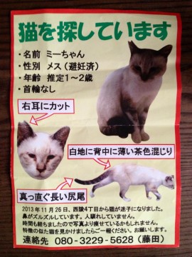 似た猫を見かけましたら、どうぞ宜しくお願いします。