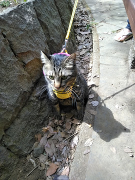 毎回怯えていたので、この日も抱き上げた夫に恐怖心から爪をたて、落ちた弾みでハーネスが緩み脱走。