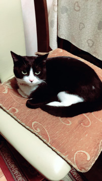 ⚫︎顔は黒白のハチワレて足はソックスです