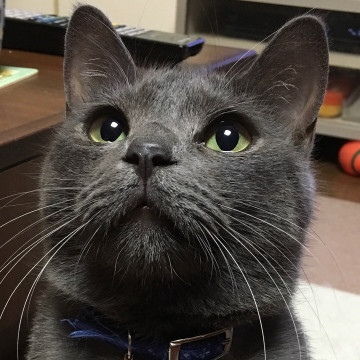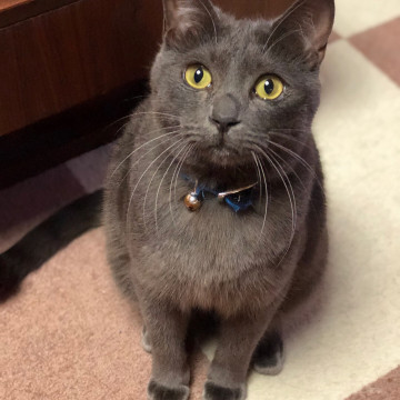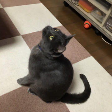 首輪は青で鈴が付いています。家の外には出たことはありません。気が小さく臆病なネコです。