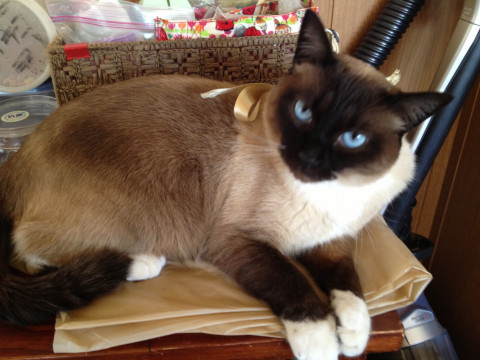 シャム猫 (MIX)目がブルーで 6kg以上あるぽっちゃりしたシャム猫です。左前足が曲がっています。