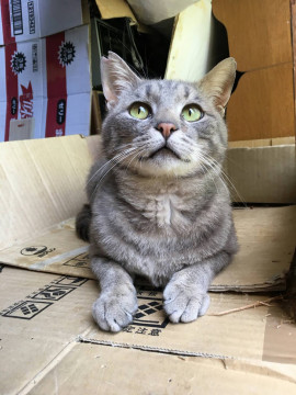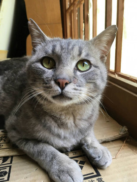 同居の猫が鍵をかけ忘れたサッシを開けて逃げ、そこからグレーちゃんも逃げたようです。