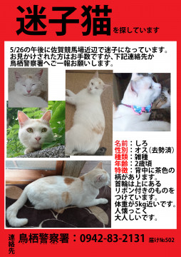 【連絡先】:警察に届け出済なので鳥栖警察署 0942-83-2131 へお願いいたします。
