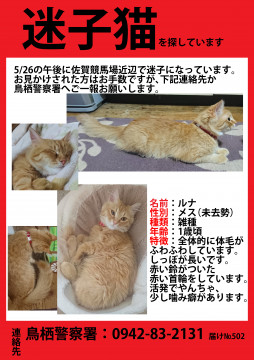 似てる猫がいたなど小さな情報でも構いませんのでご一報よろしくお願いいたします。