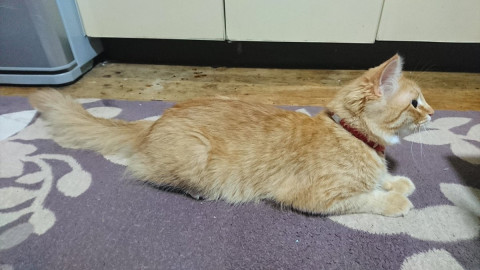 【特徴】:全体的にふわふわした体毛の子です。しっぽが体格に比べて長いです。