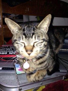 自力で帰ってきたようです。家の前のダンボールにおさまっていました。
