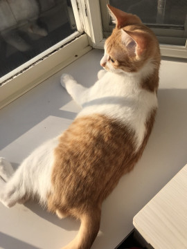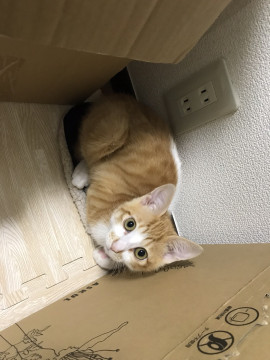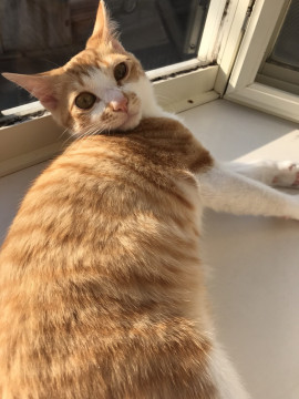 目が大きくてまんまる、カギ尻尾、鳴き声が小さい、食べることが大好き(ゴミとかよくあさくってました。)去勢まだしていません。