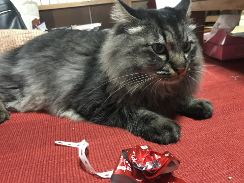 神経質でビビリでちょっとした事で飛び上がり驚くくらいです。箱の中が好きです。
