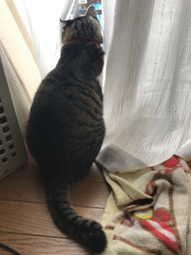 今朝の地震に驚いて網戸を破って脱走してしまいました。