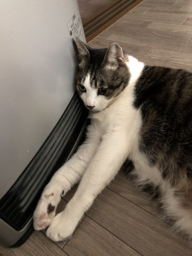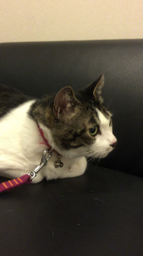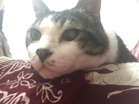 はるひは 8キロ お腹が白く 背中から尾はグレー(サバ)です 大人しく おいでととんとんすれば寄ってきます