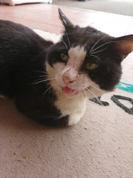 元のらちゃんで、顔に傷がいっぱいです。