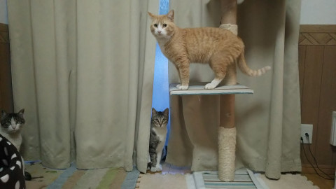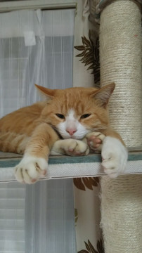 細身のしまったからだの未去勢の雄です尻尾は長く真っ直ぐです