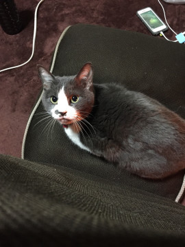 赤い首輪をつけており、裏地に電話番号が記載してあります。