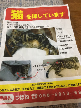 新栄町7 での目撃が最後です。臆病なので隠れているかもしれないです。見かけた方 心当たりがある方 保護して下さっている方どんな情報でもかまいません。