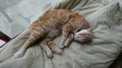 布製の赤い首輪(もしかしたら外れているかもしれません)