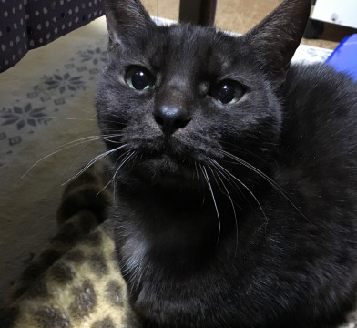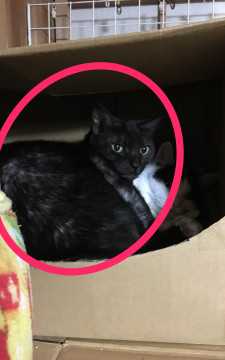 黒猫のようにみえますが、毛の根元は白っぽいです。