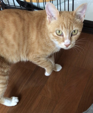口元、胸元、左肩辺り、足先が白い茶トラ♀(避妊済)