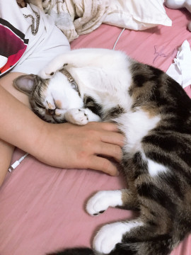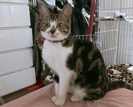 引っ越ししたばかりで外に出した事がありません。元々は野良猫でした。人懐っこいんですが子供と大きな音は苦手です。