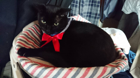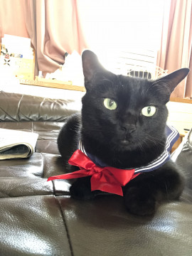 首にセーラーの襟をつけていました。