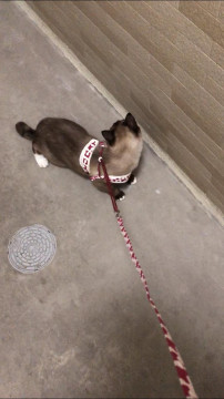 8/5午前1時半頃、自宅前の自販機で飲み物を買った時、音にびっくりしてハーネスを抜け出して脱走しました。
