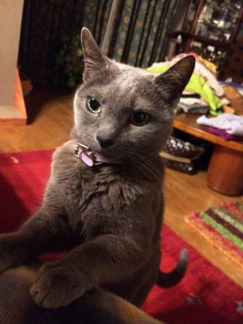 薄紫色の首輪をしていました。大人しくてすぐに抱っこされてしまいます。シッポは長くてまっすぐで曲がっていません。