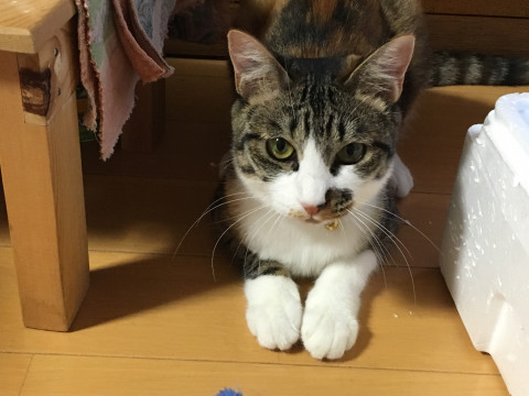 首輪も紐も取れて無くなっていましたが、怪我もなく無事でした。お腹が空いていたようで、ベランダに出していたご飯のところで鳴いていました。