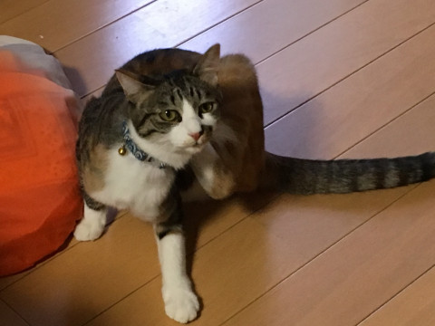 普段はミャ~ミャ~鳴くが、猫じゃらしで遊ぶときは声を出さないで口を「かかっ!」って動かす
