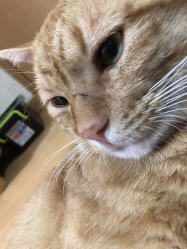よく外で近所の猫と喧嘩するので顔とかに傷があります