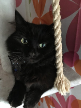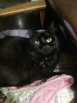 毛が長めの黒猫です。耳毛が長いのが特徴です