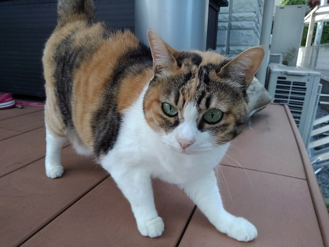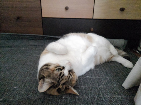 色 三毛 腹側=真っ白、背側=黒茶まだら