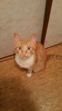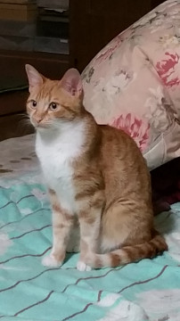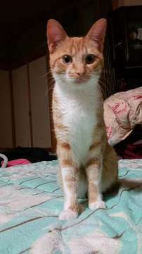 ・基本的には茶トラですが、胸からお腹までの毛は真っ白です。
