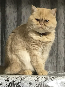 全身薄茶色 鼻ぺちゃのエキゾチックショートヘアー。