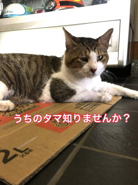 8月17日の夜にはいつも通り庭先で遊んでいましたが、18日に遊びに出掛けたきり姿を見せません。首輪は、嫌がって取ってしまったので現在はしていません!どうか情報提供よろしくお願いします。