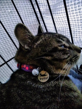 勝手口のドアの締まりが甘かったらしく、夜中に外へ出たようです。約10ヶ月前に保護し、それからはずっと室内で暮らしてきました。おっとりした性格ですが、怖がりです。濃いキジトラ、長い尻尾、濃い黄色の目、高い声でサクラ耳です。紫色の首輪は外れているかもしれませんが、タグに「コトラ」という名前と、電話番号が書かれています。脱走して三日間くらいは近所に隠れていて、鳴き声は聞こえていたのですが、それからは潜んでいる気配がなくなりました。どうかよろしくお願いします。