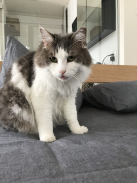 声が高く、にゃーというよりは、ハァーとかホーとか鳴きます。