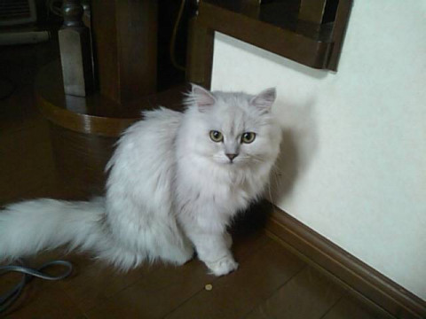 現在は写真よりも毛が短い状態で、背中や眉間の辺りの毛はすこし黒が混じっています。