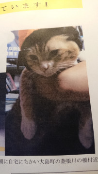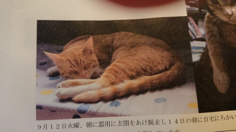 9月12日朝に自分で窓を開けてでていったのを目撃し、14日の朝に川沿いの橋の近所の家の敷地でみかけ、呼ぶと返事をしたが捕獲できないまま夕方に少し離れたお宅で目撃されたのを境にいなくなりました。9月17日で5日目です。うちの周辺は小さい川に橋があり、竹やぶ、や畑、自転車道路、国道、海があります。チラシは周辺にポスティング済みですが、反応が今のところありません。