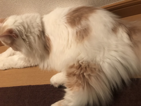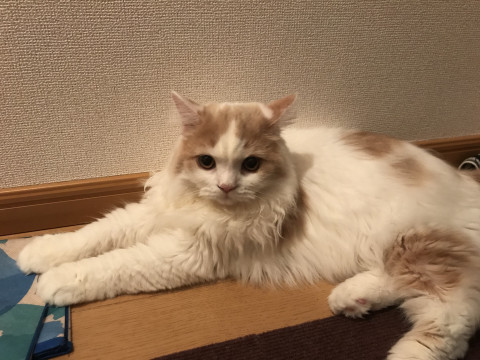 ・スコティッシュフォールド・オス(去勢済み)・クリーム色・長毛・立ち耳・人懐っこい猫です(◞‸◟)首輪はしていません。