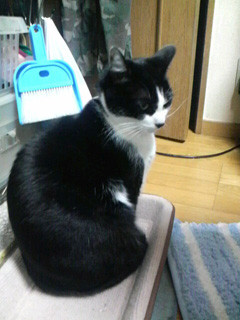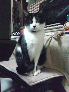 (八割れといわれる顔が白黒の猫です)