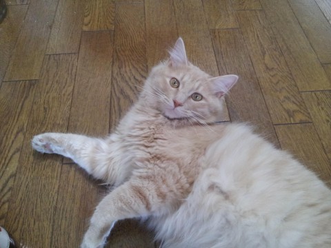 毛が長く、白っぽいベージュ色。