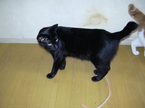 全体は黒ですが、首の後ろにほんの僅か白髪が生えています。