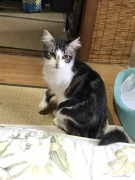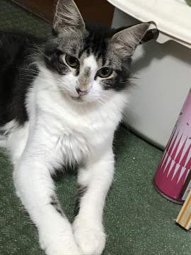 黒白のハチワレ 毛は長め 泣き方は巻舌のような声で人間ぽい てんかん持ちで薬必要環境が変わって、てんかんが治ってる可能性あり