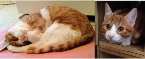 毛は短毛で白と茶の二色です。茶色の部分はしましまになっています。