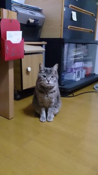 毛色は灰茶。雑種ですが毛並みはロシアンブルーに似ています。