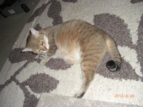 種類はエジプシャン・マウで、縞模様ではなく、点々柄です。