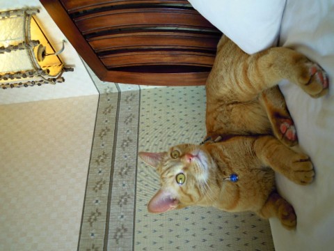 茶トラのオス(去勢済み)、少し大きめです(5kgくらい)。