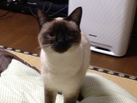 シャムのような柄の雑種で、尻尾がしましまです。