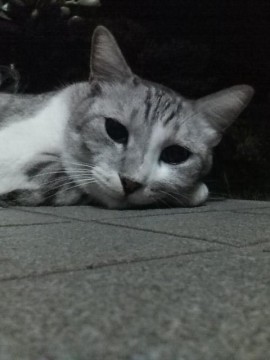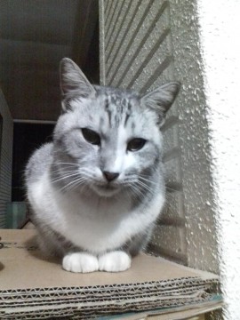 サバトラのおとなしい子です エリザベスカラーを付けたまま 逃げてしまい ました。