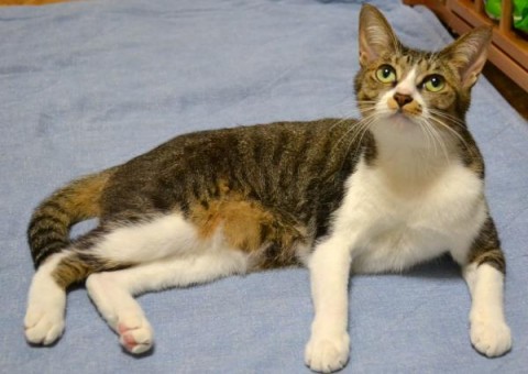 ・その他特徴:細身/2歳半から3歳ぐらい/尾長(先っぽが縞)/首輪はナシ/避妊済/少し薄茶というか黄色っぽい色が混じっているキジ模様/腹側は首から足先まで白/顔はハチワレ。鼻の穴周りに薄茶の模様がある。/名前を呼ぶとプルルルニャーンと鳴くことがある。