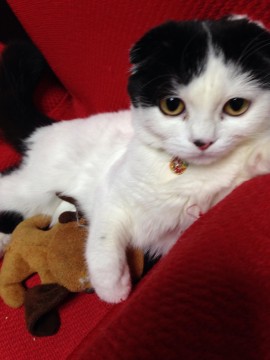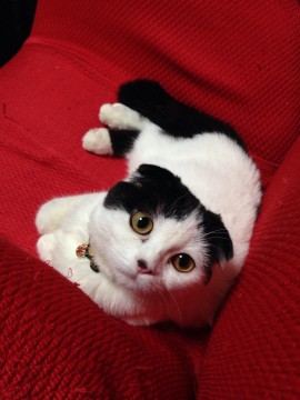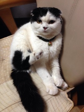 白黒の耳折れスコティッシュ雌(頭と尻尾が黒)